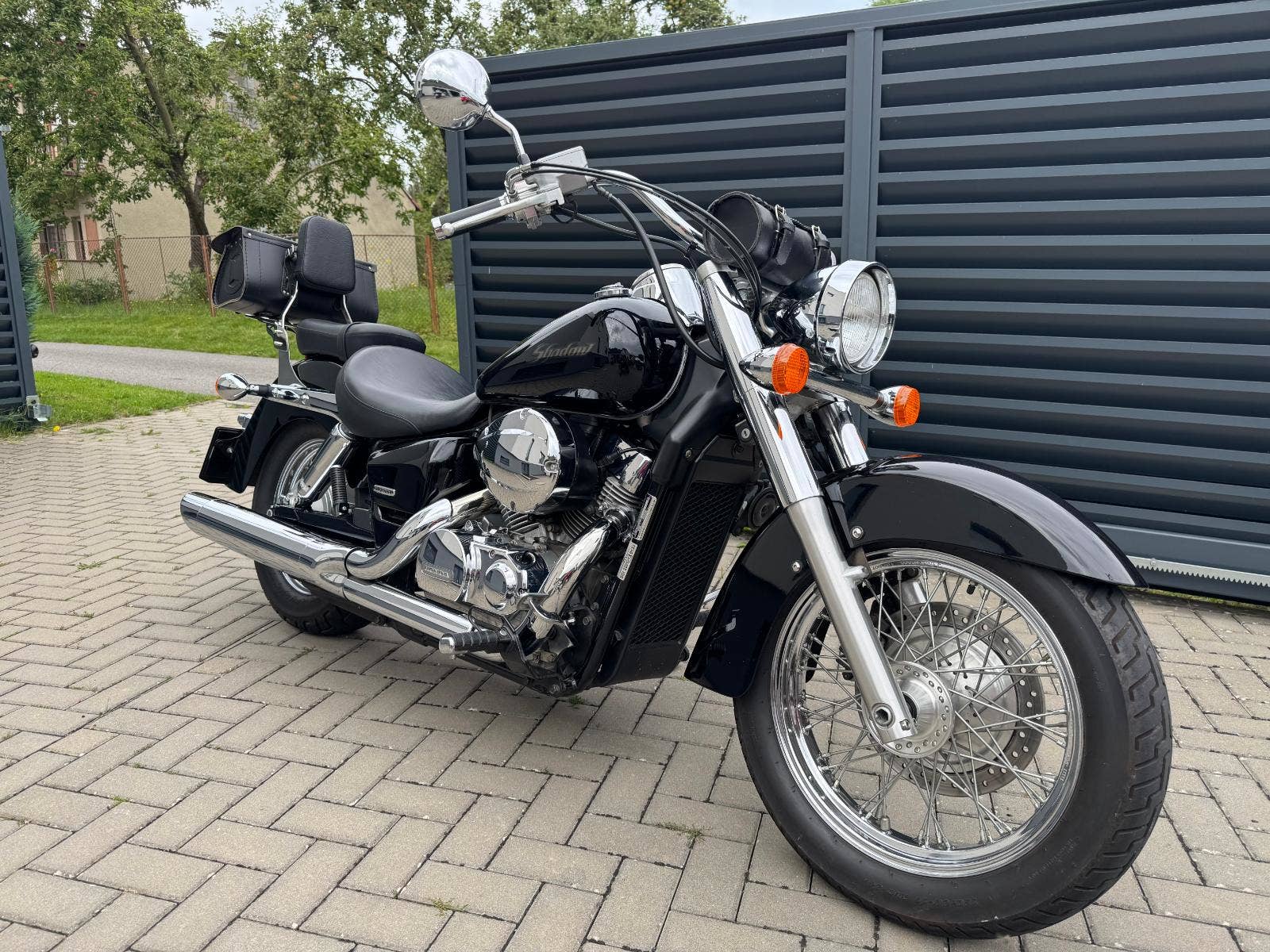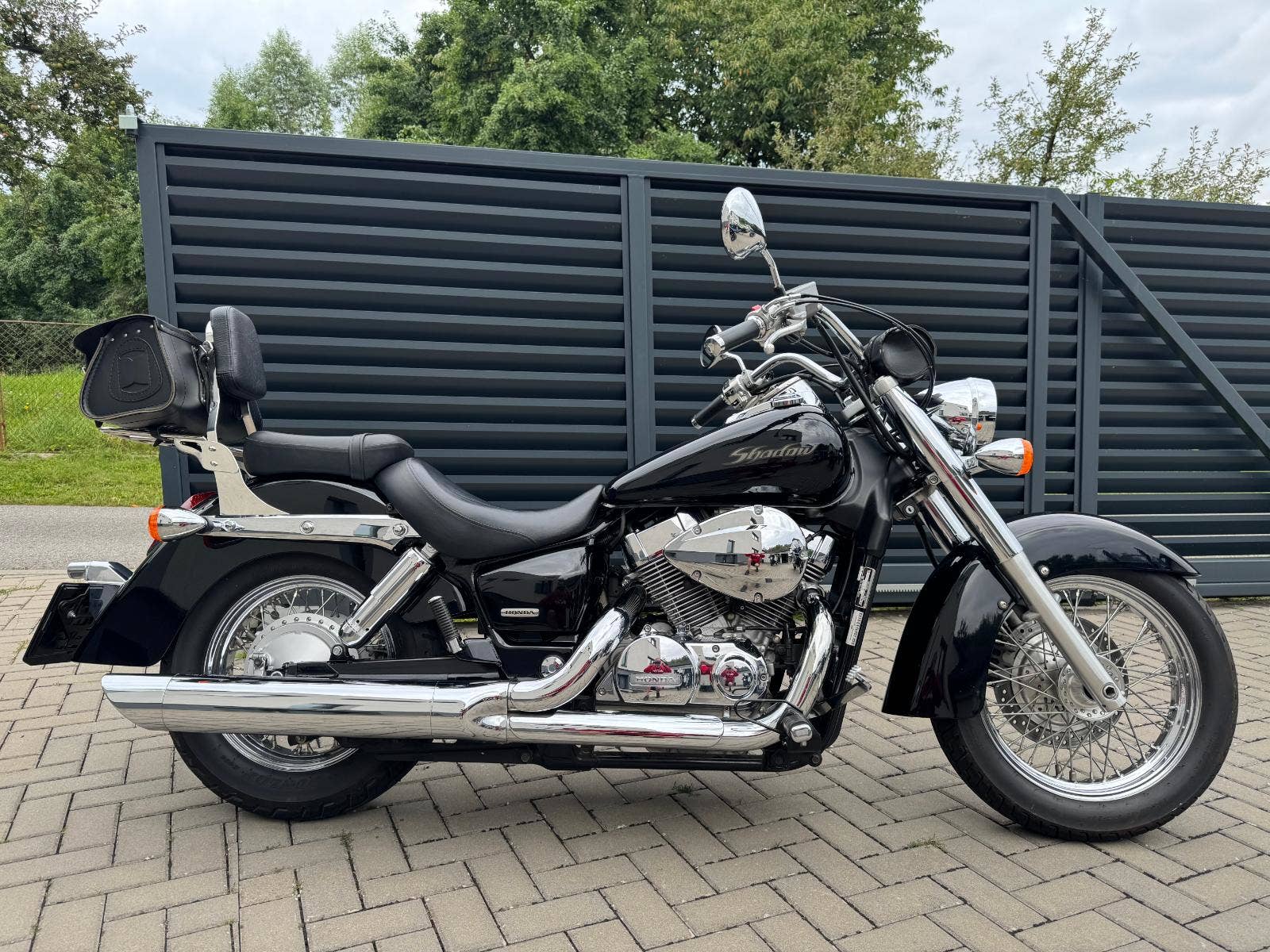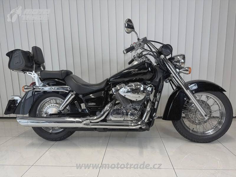 Honda VT 750 C Shadow, 1. registrace 2005, motorka již registrována v ČR, SKT do 7/2029, najeto pouze 20600 km, výkon 33 kW - Lze řídit s řidičským oprávněním A2. Kožená rolka, kožený kufr, nosič, opěrka spolujezdce. Motorka v atraktivní černé barvě v TOP TOP stavu bez dalších investic, jen sednout a jezdit.