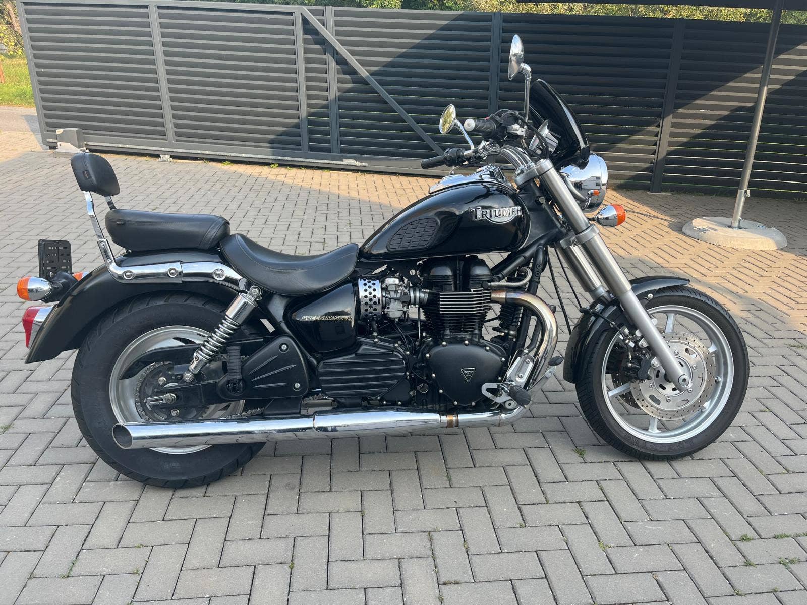 Triumph Speedmaster, 1. registrace 2005, najeto 45000 km, výkon 41 kW, udržovaná motorka, částečná servisní dokumentace, již přihlášeno v ČR, STK do 7/2027, bez dalších investic.