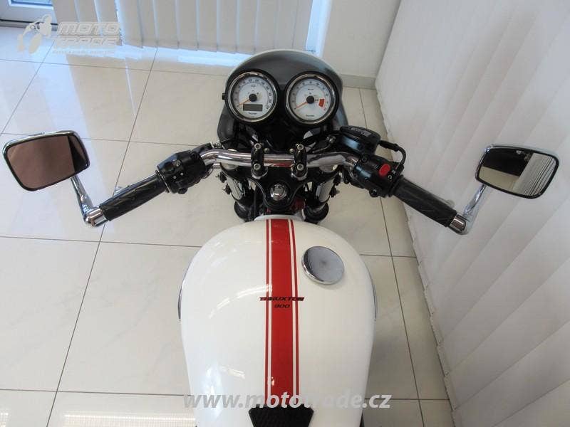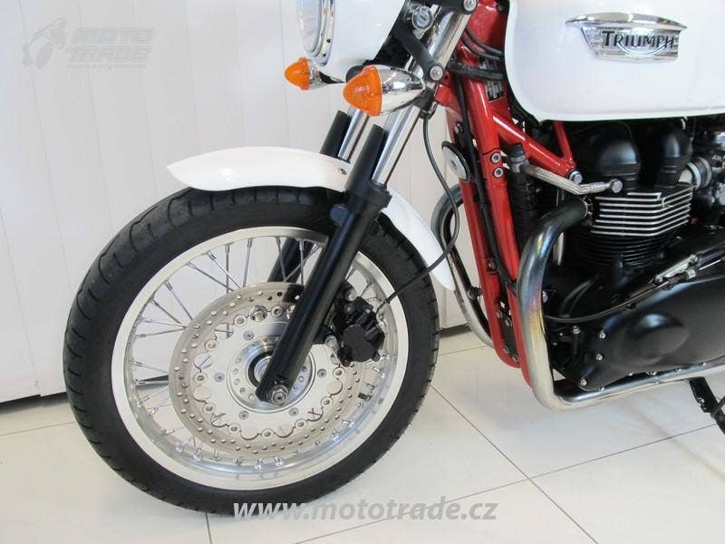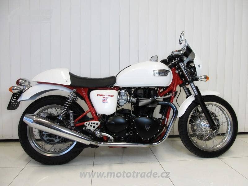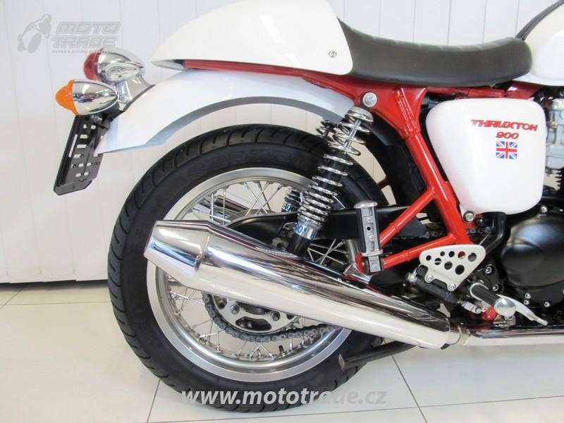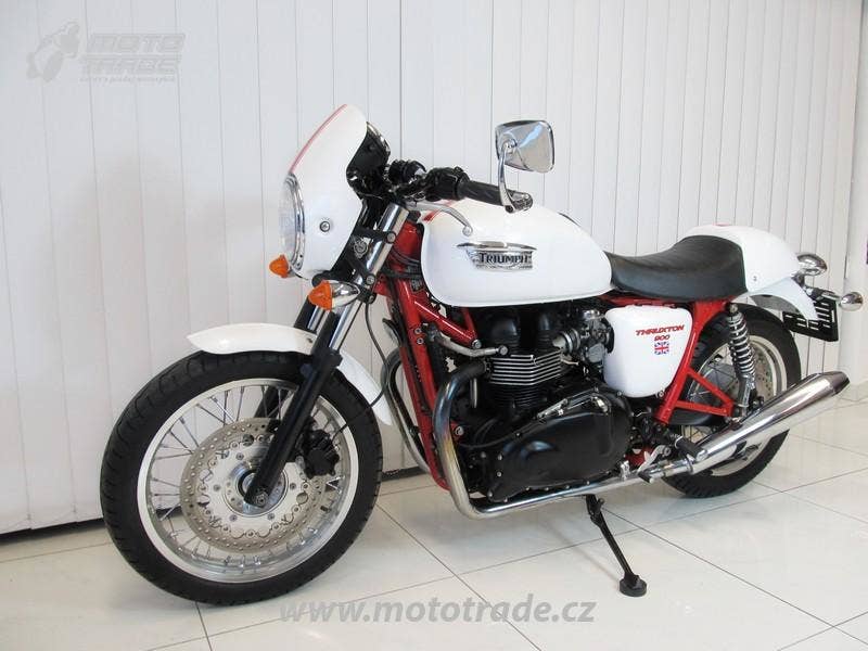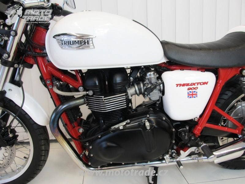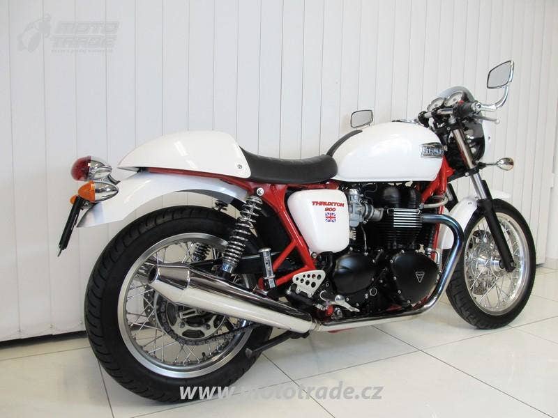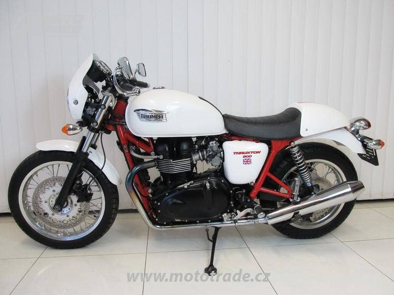Triumph Thruxton 900, 1. registrace 2010, najeto 60.000 km, výkon 50 kW, krovka sedadla spolujezdce. Kapotáž předního světla, manuál, servisní knížka a servisní dokumenty, 3x klíč.