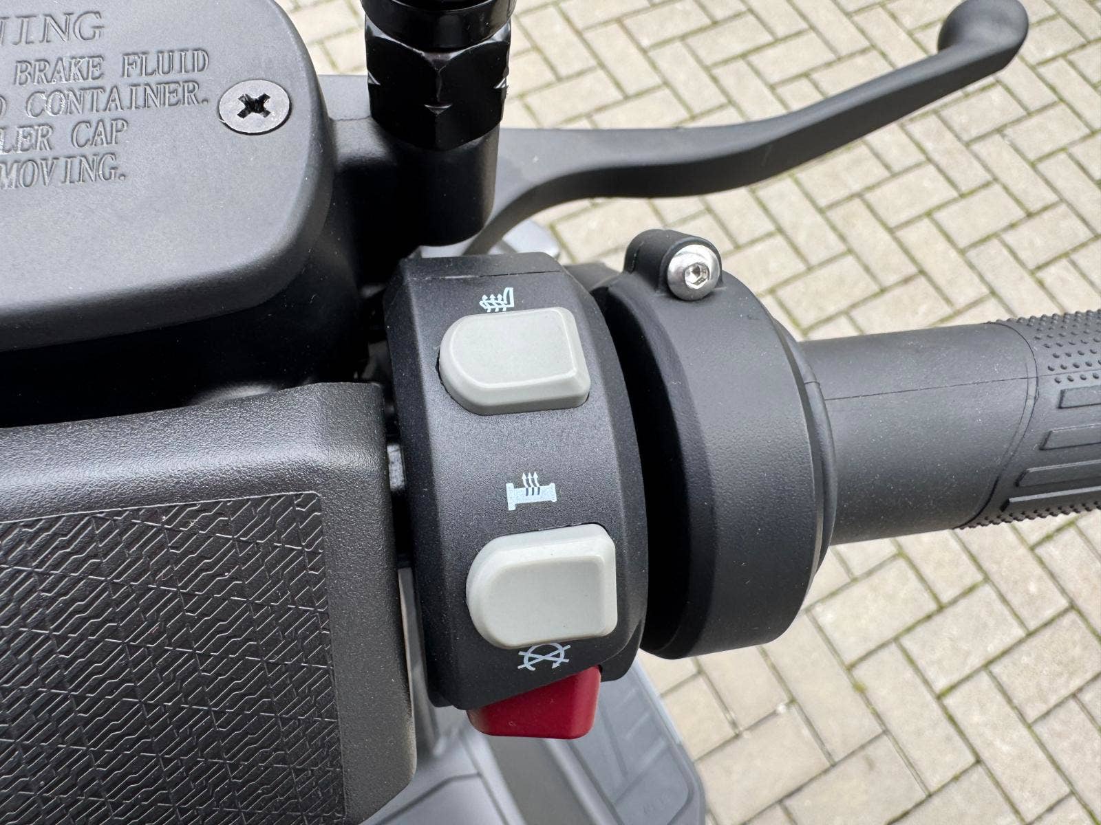 Pravým direktem kontruje osvětlenej prostor pod sedlem s místem až na dvě helmy. Do provazů konkurenci zatlačí propracovanej vysokokontrastní 7" TFT displej s turn by turn navigací, senzorem tlaku v pneumatikách a kompletní bluetooth konektivtou. Definitivní K. O. zasadí vyhřívaný rukojeti řídítek i vyhřívání sedla.