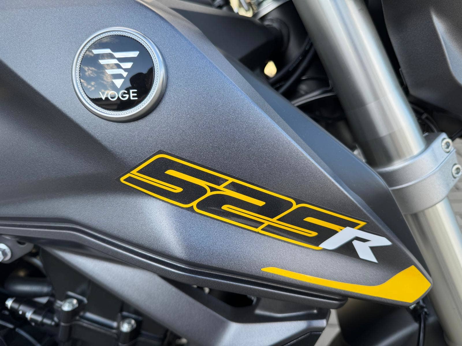 Voge 525 R, zcela nový motocykl, výkon 35 kW - možno řídit s řidičským průkazem A2 od 18 let. Vylepšený dvouválcový motor o objemu 494 cm3 s příjemnou spotřebou, 15% točivého momentu navíc. Podvozek Kayaba s up-side-down vidlicí a japonskými brzdami od Nissinu. Barevný LED ukazatel rychlosti, zařazené rychlosti, průměrné spotřeby, hodin, stavu paliva, otáček motoru a celkové i denní vzdálenosti. USB zásuvka.