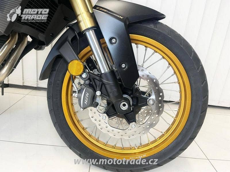 Všestranná a spolehlivá mašina s neskutečně komfortním podvozkem a drátěnými koly s bezdušovou pneumatikou Metzeler Tourance. Spolehnout se můžeš na moje topový brzdy od japonskýho Nissinu a dostatečně silnej, dvouválcovej motor o výkonu 48 koní. Díky dvěma jízdním režimům mi dáš snadno vědět, jestli se mnou chceš šetřit benál, anebo máš zrovna chuť na divočení v režimu sport.