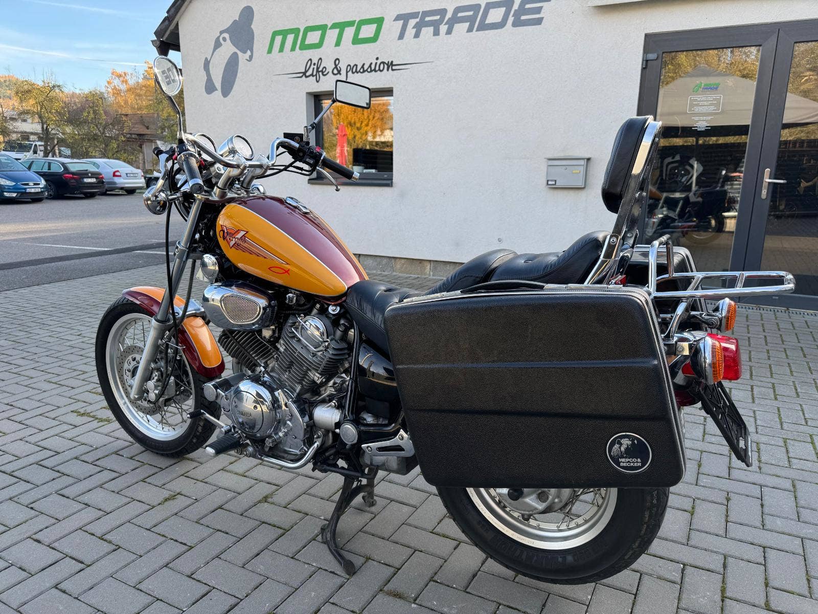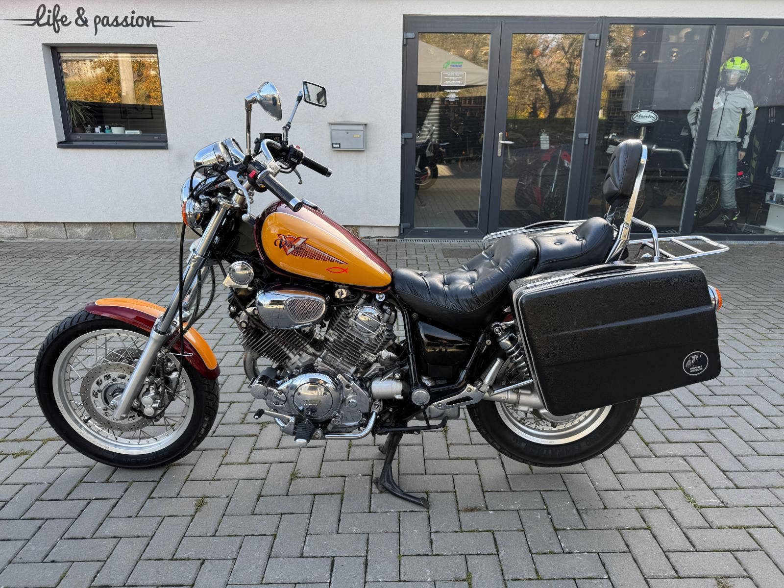Yamaha XV 750 Virago, 1. registrace 1996, najeto 54.000 km, výkon 40 kW, nosič, opěrka spolujezdce, uzamykatelné kufry, hlavní stojan, laděné výfuky. Krásný stav! Udržovaná motorka bez dalších investic. Krásný lak, zajímavá barevná kombinace.